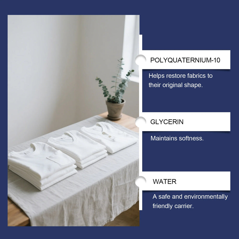 Yes! Our gentle formula uses polyquaternium-10 and glycerin to restore smoothness without damaging fibers. It's designed to be safe for a wide variety of common materials, helping you maintain the soft texture of your favorite clothes while avoiding the harsh heat of traditional ironing.