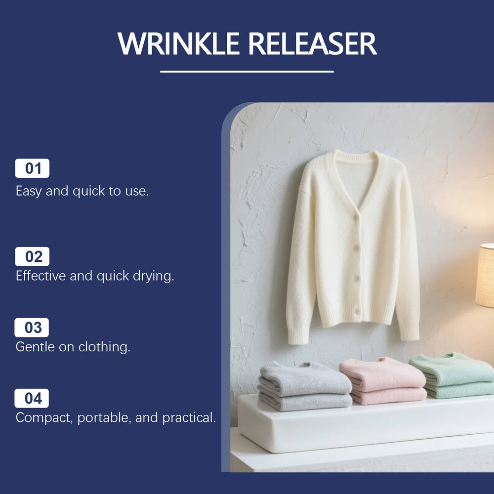 Skip the bulky iron and harsh chemicals with our fast-acting, skin-safe formula that restores fabric smoothness and freshness in seconds while protecting delicate fibers from heat damage.